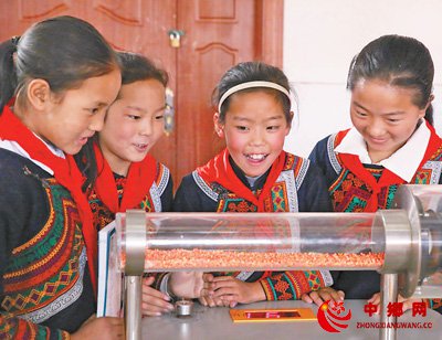 2015年6月,在美姑县城关小学,奇妙的科学实验让孩子们十分开心。 沙古曲日摄(影像中国)
