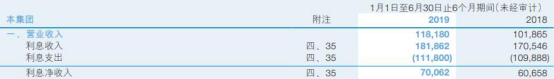 2019年上半年,交通银行的利息净收入为700.62亿元,同比增长15.50%。其中,利息收入为1818.62亿元,上年同期为1705.46亿元;利息支出为1118.00亿元,上年同期为1098.88亿元。
