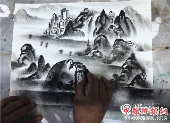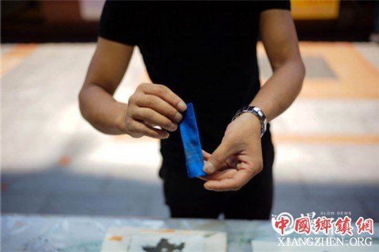翟云川作画工具不多,竹片,巴掌大的布条拧成团,蘸墨,抖汁,恰到好处后,在纸张上拓印,一棵棵树浮现眼前,围观的游客啧啧称奇。“看似简单几笔,其实很考验一个人的功底。”宋友平说。