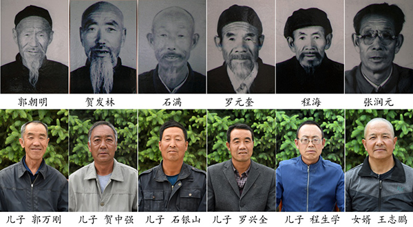 拼版照片:上排从左至右依次为郭朝明、贺发林、石满、罗元奎、程海、张润元(资料照片);下排从左至右依次为郭朝明儿子郭万刚、贺发林儿子贺中强、石满儿子石银山、罗元奎儿子罗兴全、程海儿子程生学、张润元女婿王志鹏(5月20日摄)。