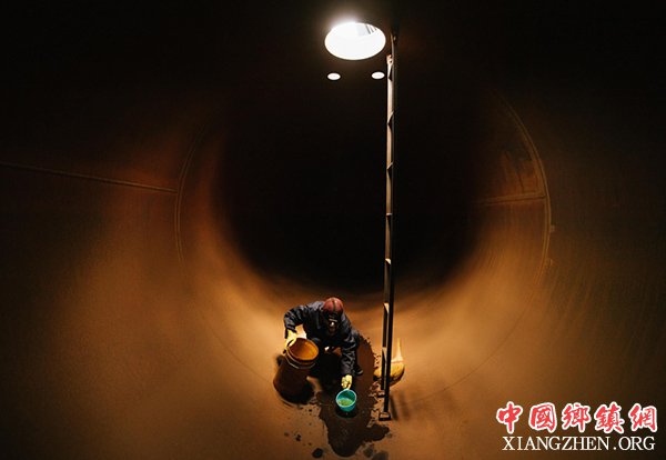 于国东在运载罐内清理残留液体(7月2日摄)。