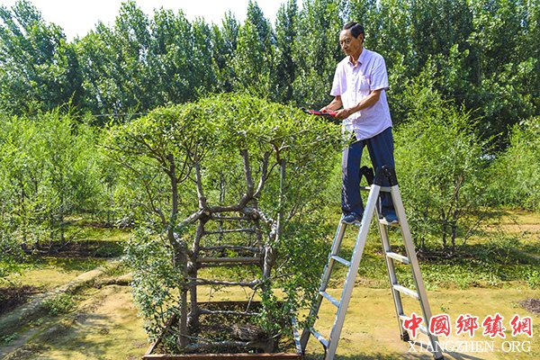 7月16日,在河北省深州市王家井镇西蒿科村,尚春林在修剪管理“生态椅”。