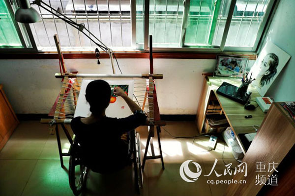 “一些大一点的作品,我一年只能绣出一幅,有时候需要200多种颜色的丝线。”坐在轮椅上的石胜兰,手起针落,一边补活,一边解释,刺绣不能一气呵成,很多时候需要返工,尽管已经熟能生巧,11年里,总共完成的大件只有6幅,“我希望自己的每一幅作品,都能绽放出美丽的色彩。”