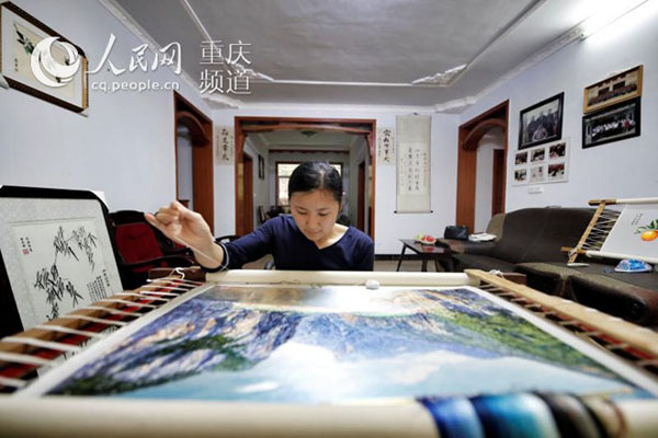 将乱针绣运用到蜀绣,形成独具风格的三峡“夔绣”。罗嘉摄