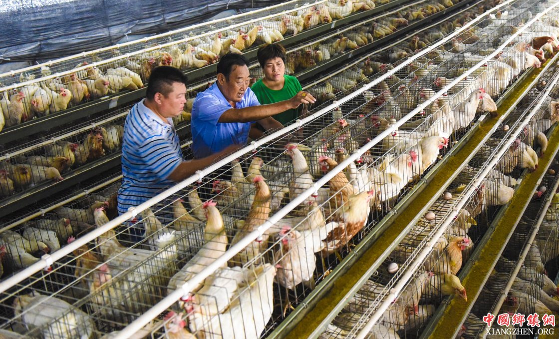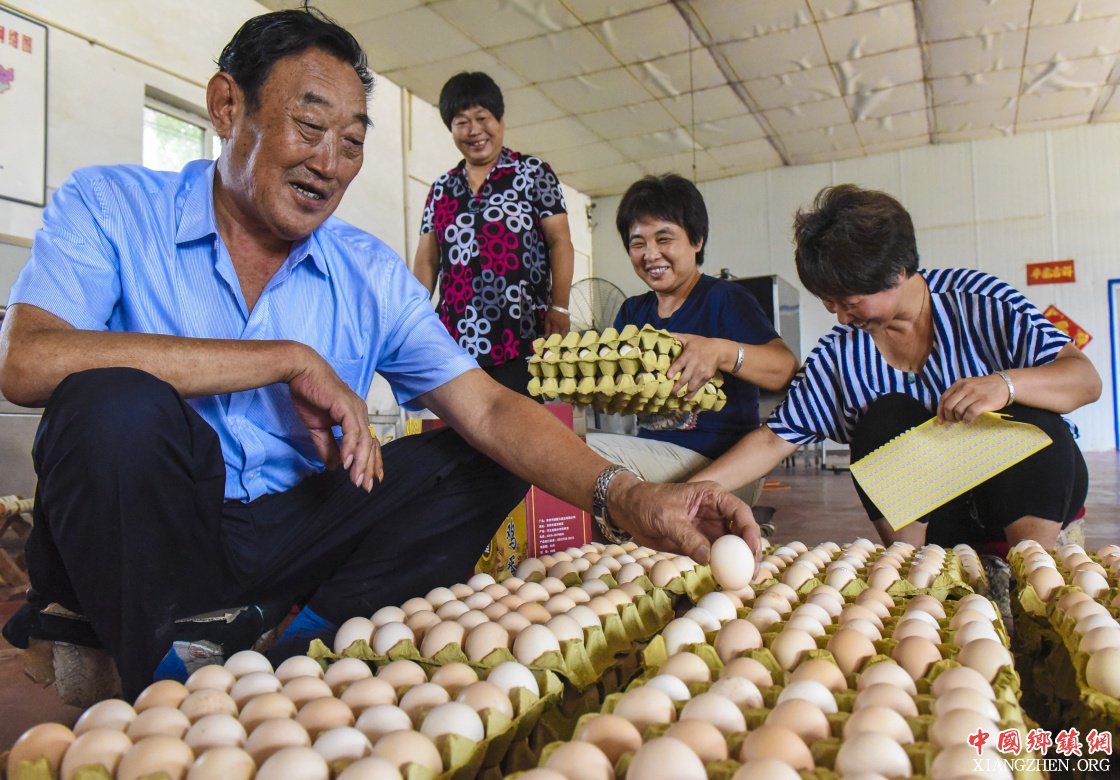 8月11日,在深州市星火畜禽专业合作社,李建社(左一)在了解鸡蛋生产情况。