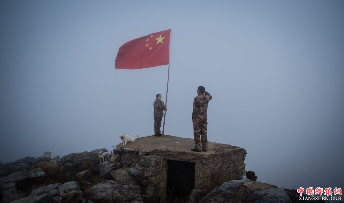 王继才夫妇在开山岛的最东边举行向国旗敬礼仪式(2017年1月1日摄)。
