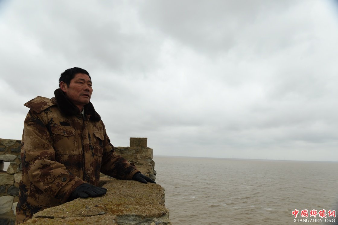王继才在江苏开山岛上眺望远方(2017年2月21日摄)。