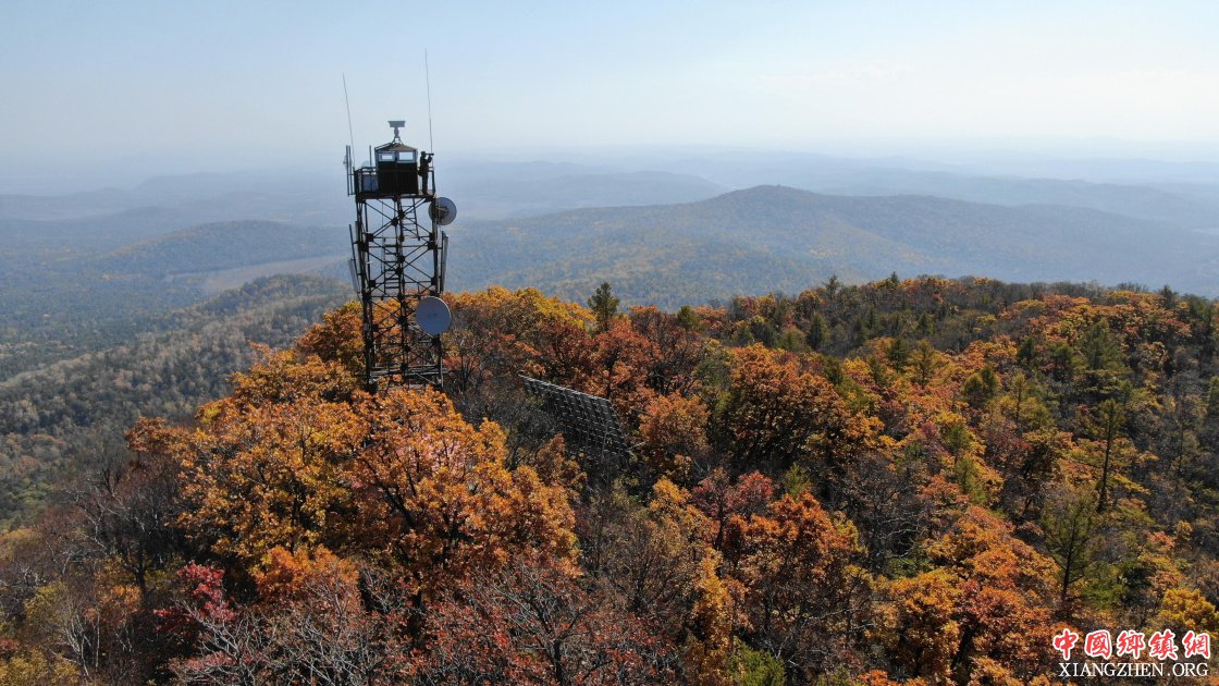 9月20日,内蒙古大兴安岭毕拉河林区四方山瞭望站护林员温建民在瞭望塔上瞭望(无人机拍摄)。