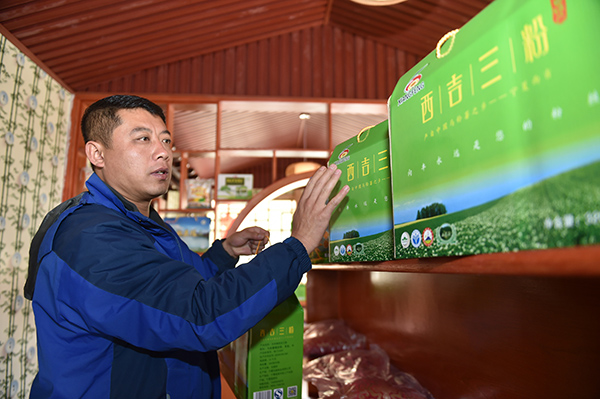 游客在宁夏西吉县龙王坝村选购特色农产品(10月13日摄)。