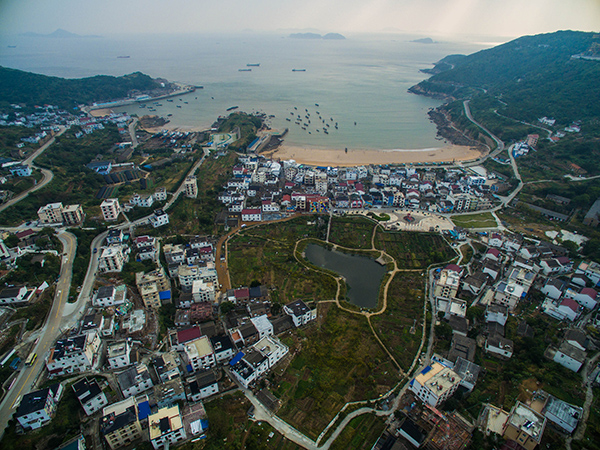 空中俯瞰背山靠海的田岙村(10月27日摄)。