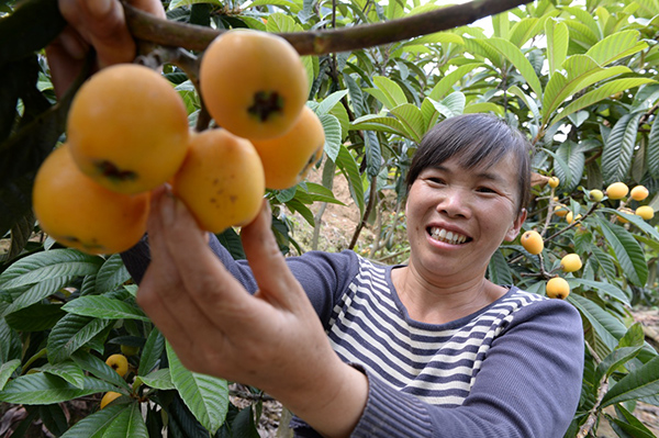 5月4日,贵州省开阳县花梨镇清江村的村民在采摘枇杷。
