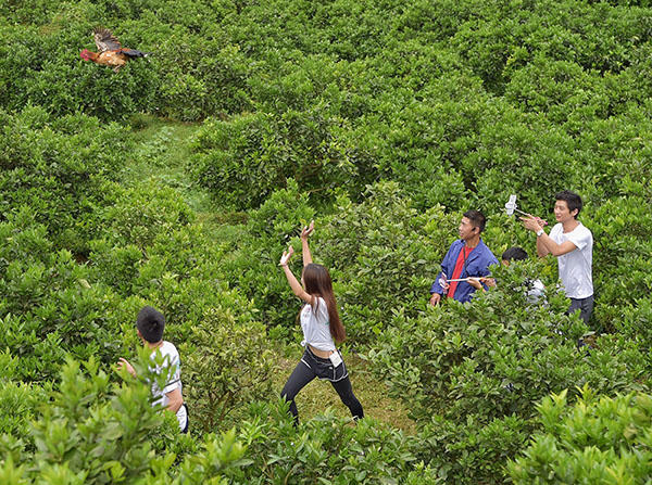 5月30日,工作人员给土鸡套上识别码,准备给消费者发货。