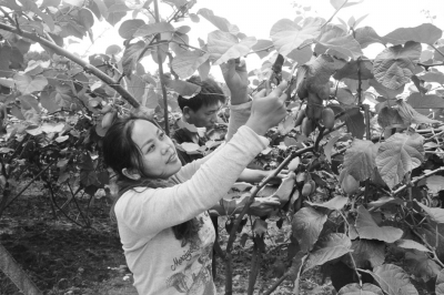 菖蒲塘村女子嫁接服务队正在为猕猴桃剪枝。张振中摄