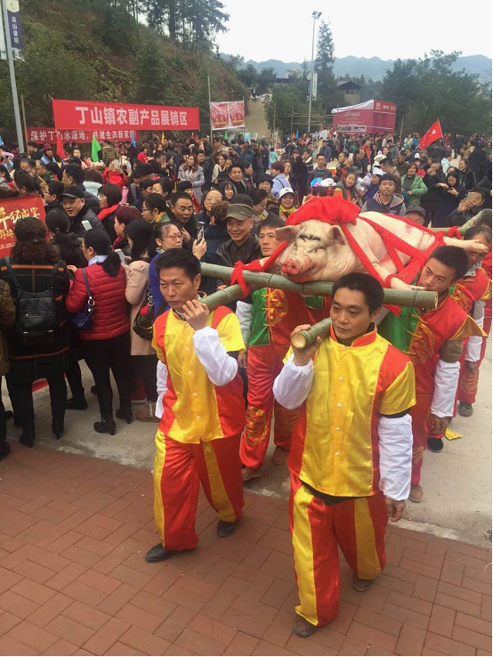 12月10日,2016“三养綦江”冬季旅游养生季暨丁山湖第五届年猪文化节开幕式、重庆第二届赶年节暨互联网+乡村旅游扶贫綦江分会场启动仪式在綦江丁山湖开幕。年猪巡游、祭祀仪式、篝火晚会、农特展销等丰富多彩的活动吸引了全市近4000名游客参加,主办方通过网红直播将本次年猪宴盛况向全国超30万网红粉丝进行了在线宣传,成为2016年重庆首场大规模年味活动。