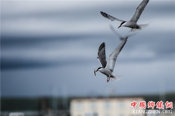 在中国最大内陆咸水湖——青海湖,一只水鸟捕捉到湟鱼后飞离水面(2015年6月24日摄)。新华社记者 吴刚 摄