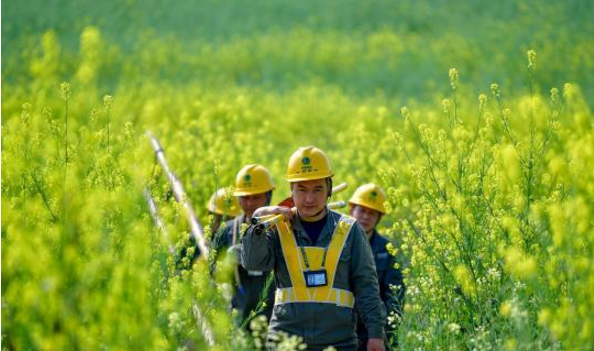3月22日,几位身着工作服的电力工人正在位于重庆永川清峰镇凌阁堂村的“醉美酒香生产业园”里开展春耕保电服务,帮助农户解决春耕用电难题。春耕时节已至,为保障重庆各地春季生产耕作期间安全用电,国网重庆市电力公司抽调党员干部、技术骨干组成70多支共产党员服务队,深入到春耕生产一线,加强线路设备隐患排查力度,并重点检查了排灌站、临时抽水用电线路等设备,帮助农民解决春耕用电中的各种问题。此外,为更好地服务“三农”扶贫助困,2017年—2019年,重庆市电力公司计划投资20.5亿元,完成该市9个国家级贫困县输配电网改造。