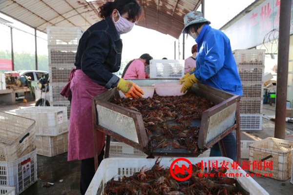 在利民管区沈运喜水产集中收购点。记者看到,80后时尚的赵小伙开着自家商务车前来送小龙虾。这个收购站的老板顾不上跟记者搭话,一番验货称重交易后,笑哈哈地拿着一只小龙虾告诉记者,你瞧这鳃花雪白透亮的,说明水质好;你看这肚皮圆肥硕大,说明品质好,你再用手在筐里来回一划,个个活蹦乱跳,说明体质健壮。我们微山湖的小龙虾发往外地,都是100斤一包,外地小龙虾都是40或50斤一包,内行人不看牌子,一看包装就知道是我们微山湖的。因为微山湖的小龙虾耐挤压,成活率高,价格当然要比外地的小龙虾要贵1-2元一斤,微山湖小龙虾在全国十分抢手,很受客户欢迎。我们的小龙虾都销往北京、上海、南京,就我这个收购站,旺季一天也往外走个五千斤。记者发现,前来送小龙虾的渔民有开着小卡车的,有也有开着面包车来的,送货收送一律都是现金结账,渔民点着钞票乐的个个合不上嘴。