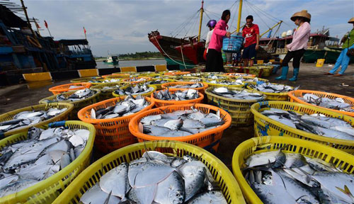 近日,随着天气好转,海南渔民加紧出海捕捞,供应各地市场。