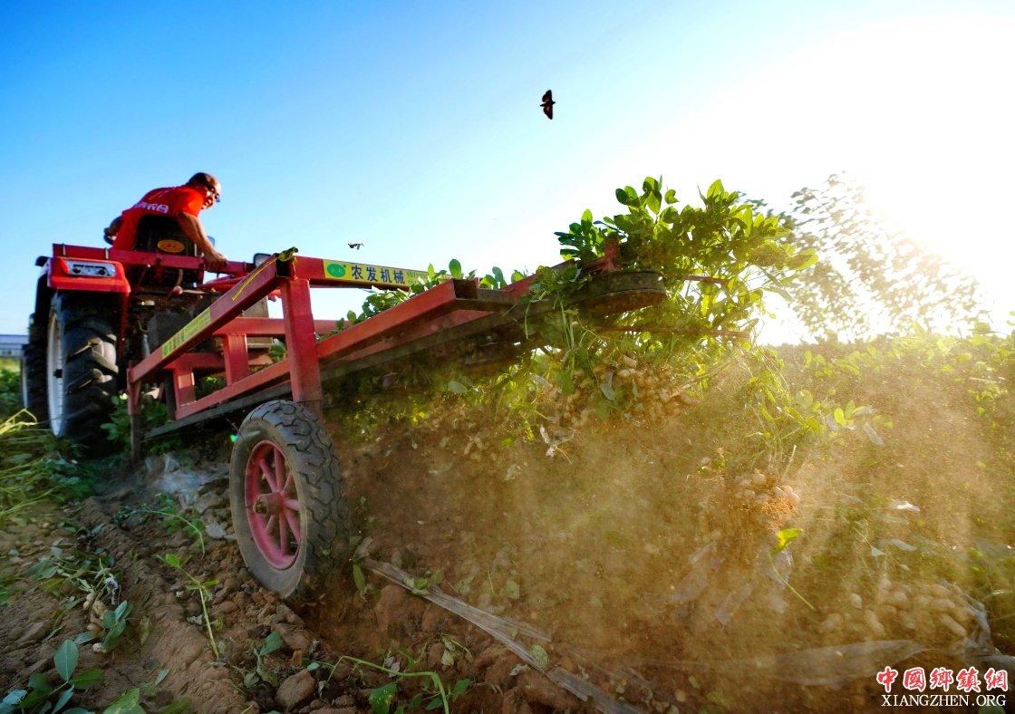 9月8日,滦县滦城街道办事处杨家院村的农民使用机械收获花生。