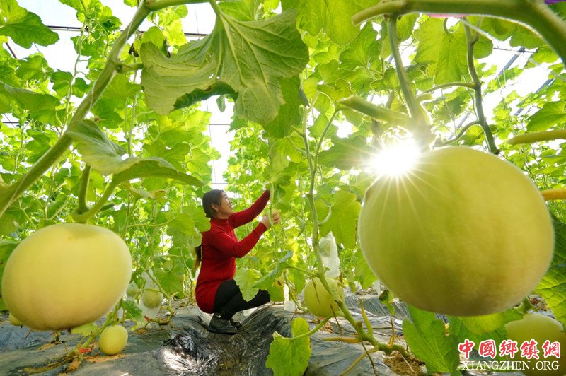 1月6日,唐山市丰润区丰润镇西那母庄三村农民在大棚内管护甜瓜。