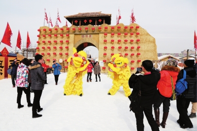 大年初六,在近零下10度的北旅田园景区里车来车往,过大年的氛围仍然浓郁。吐火、舞狮、歌舞、武术、二人转等民俗杂耍表演让传统与现代有机融合,艺人们的精彩表演引来游客阵阵掌声