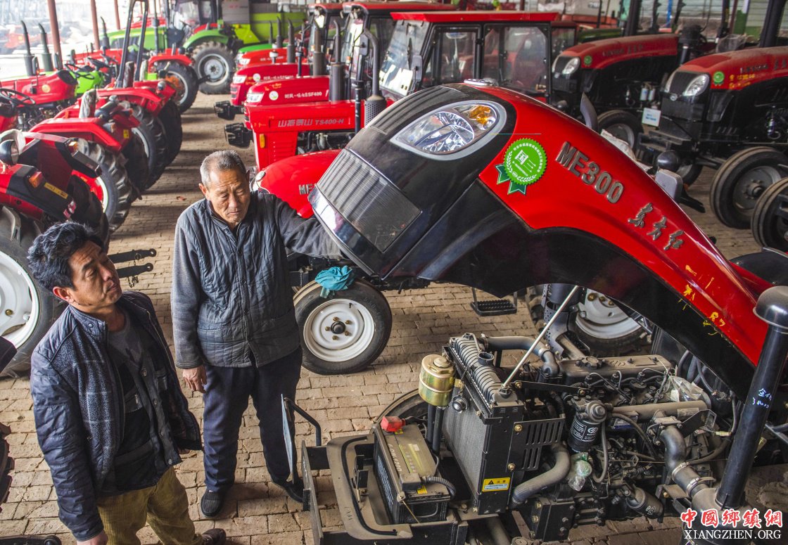 2月20日,在枣强县一家农机市场,农民在选购农机。