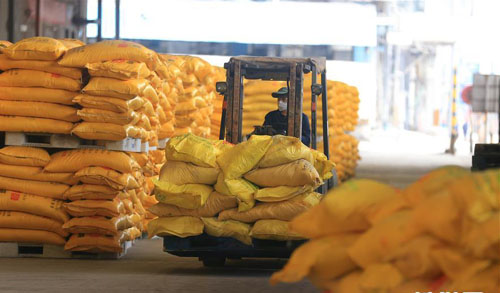 2月26日,在贵州省福泉火车站,工人在铁路专用线仓库装运化肥。春耕时节,贵州省福泉火车站为春耕化肥等农资开设快装快运“绿色通道”,保障春耕物资及时供应市场。 新华社发(吴吉斌 摄)