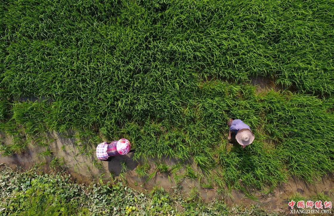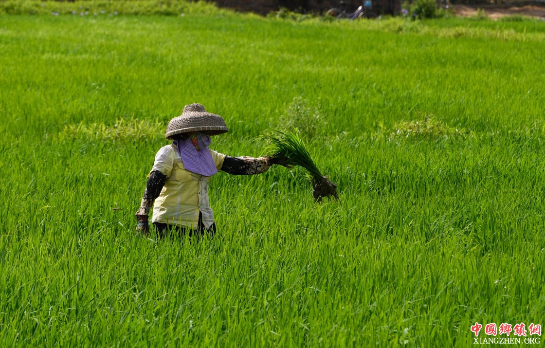 初春时节,海南万宁市万城镇一片忙碌景象,当地农民在田里插秧、除草,积极投入到农事劳动中。