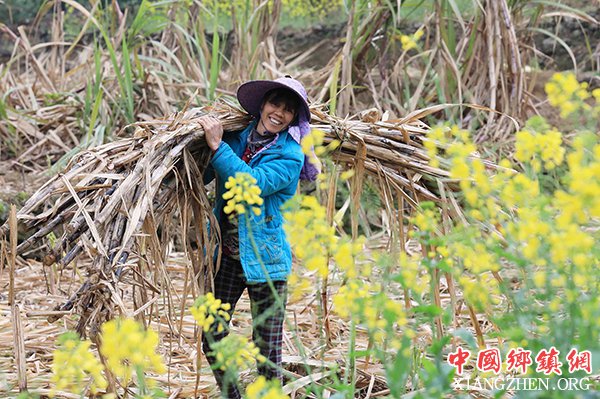2019年3月4日,在广西柳州市融安县大良镇石门村,一名农民在田间扛运蔗种,准备新种甘蔗。图片作者:谭凯兴/视觉中国