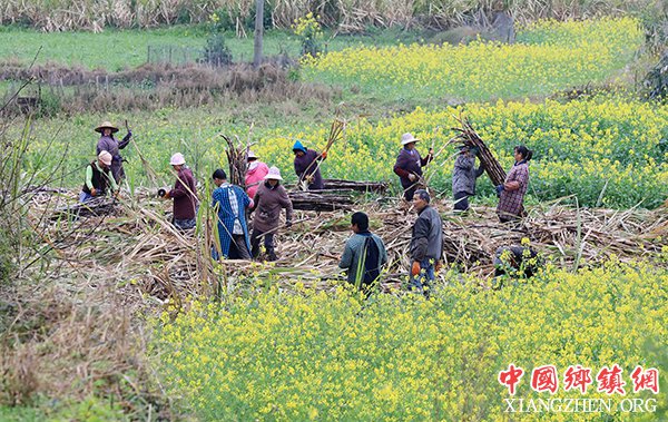 2019年3月4日,在广西柳州市融安县东起乡良村村英村屯,农民在田间砍收甘蔗。阳春三月,正值春耕农忙时节,融安县蔗农抢抓农时,抢收甘蔗,抓紧时间做好春耕备播,广袤的桂北大地处处都是各族群众忙碌的身影。