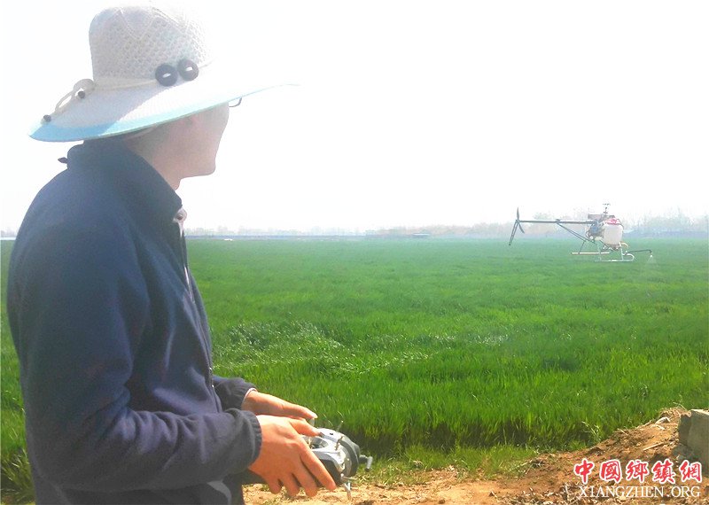 (中国乡镇网山东讯)4月1日,在山东省郯城县马头镇双兴社区三兴湖片的小麦田里,农民正在用智能“无人机”喷洒农药。一袋烟的功夫,上百亩的小麦就将农药喷洒完毕。