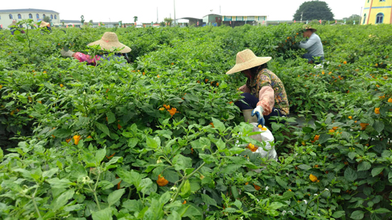 阳春三月,细雨蒙蒙,地处广东最南端的雷州半岛正迎来春耕生产、播种灌溉的好时节。在雷州市客路镇绿富种养农民专业合作社的示范园里,社员们正忙着采摘黄灯笼辣椒,这些辣椒会被做成辣椒酱出口到美国。