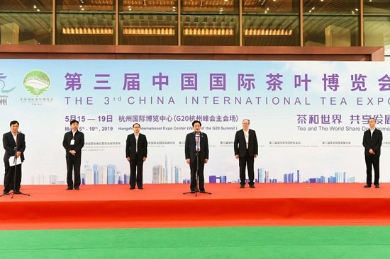 本网讯 5月15日,第三届中国国际茶叶博览会在浙江杭州开展。农业农村部副部长屈冬玉出席并宣布开展,浙江省副省长彭佳学出席开展式。