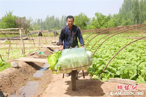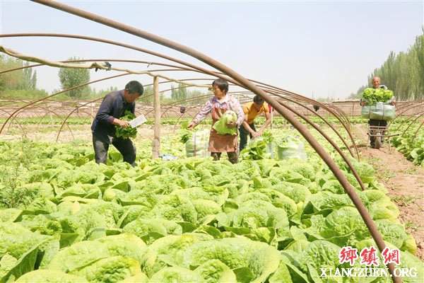 5月15日,库车县乌恰镇喀拉布喀村蔬菜种植户付志丰采收大白菜,在准备去市场销售。