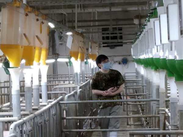 FPF未来猪场精喂仪(右)逐步替代猪场原有的饲喂器。张维佳 摄