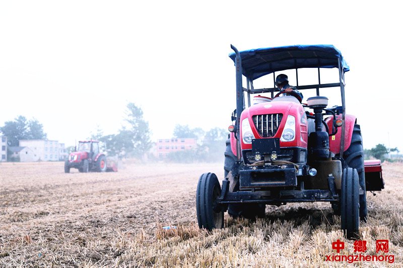 (中乡网安徽讯)6月3日,两台旋耕机在安徽省阜阳市颍东区袁寨镇郝桥村刚收割过的麦田里进行灭茬还田作业。