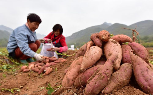 10月24日,河北省涉县河南店镇胡峪村农民在收获红薯。 近年来,河北省涉县在推进产业富民过程中,结合当地土壤和气候特点,因地制宜发展红薯种植,为种植户拓宽了增收渠道。目前,该县种植红薯面积达2.8万亩。 新华社记者 牟宇 摄