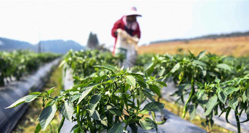 钦州市钦南区那丽镇村民在田间收辣椒(2月23日摄)。 连日来,广西钦州市坚持“一手抓防疫不放松,一手抓经济不动摇”,在做好企业复工生产的同时,积极组织群众开展春耕春种,确保社会经济平稳发展。 新华社记者 张爱林 摄