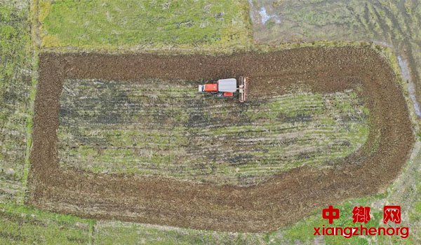 2月29日,广西桂平市南木镇的农民在田间用农机犁地(无人机照片)。 眼下正值春耕备耕时节,广西桂平市在抓好疫情防控的同时力保农业生产,积极引导群众抓住农时进行春耕春播。 新华社记者 曹祎铭 摄