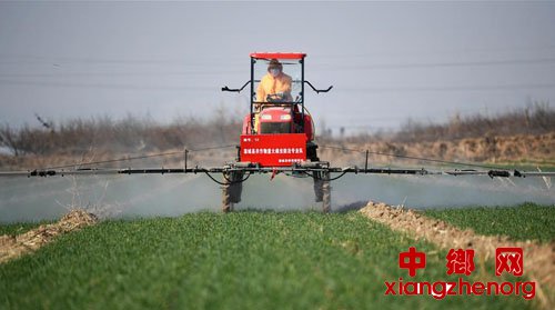 3月4日,建建农机合作社社员在蒲城县椿林镇平峨村驾驶自走式高杆喷雾机为小麦喷洒除草杀菌剂。 近日,为确保疫情期间不误农时,陕西省蒲城县植保植检站组织县内7家农作物病虫害专业化防治单位,在小麦返青起身期,对麦田进行除草及病虫害的防控工作。 新华社记者 李一博 摄