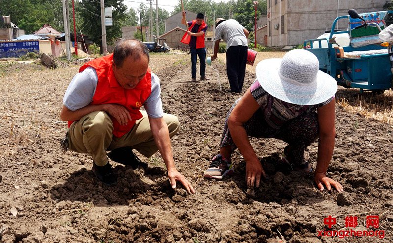 该乡党员服务队队员在梧樟村帮助困难户抢种夏玉米。