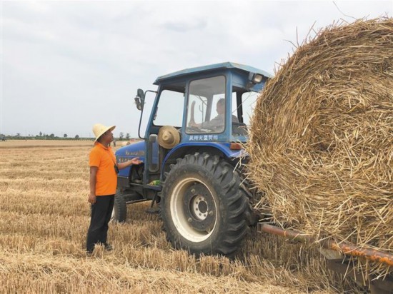 今年李苍虎种了480多亩小麦,小麦收割后还有大量的秸秆留在地里。李苍虎说:“以前秸秆捡拾打捆机械不好叫,现在手机上一点,处理秸秆的作业队就来了,太省心了。今年合作社收秸秆的价格是一亩地20元,这些总共能卖近1万元。”说话间,农机手已经热火朝天地在地里忙活着。