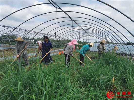 六七十岁的的老人在地里锄草,每个月有近2000元工资。