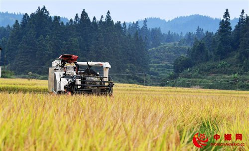 近日,贵州省黔东南苗族侗族自治州天柱县高酿镇大坝种植的水稻迎来收获季节,农民抢抓有利天气进行水稻收割、搬运、贮藏,确保秋粮颗粒归仓。