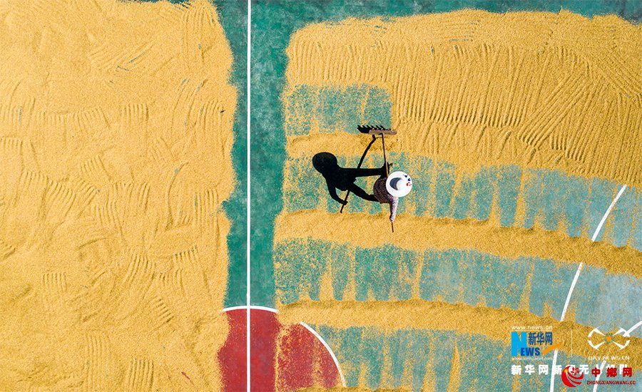 丰收时节的乡村文化广场成了“黄金”晒场。新华网发(甘昊旻 摄)