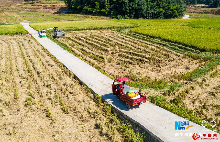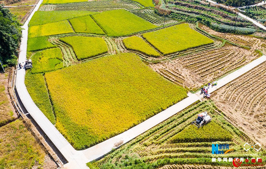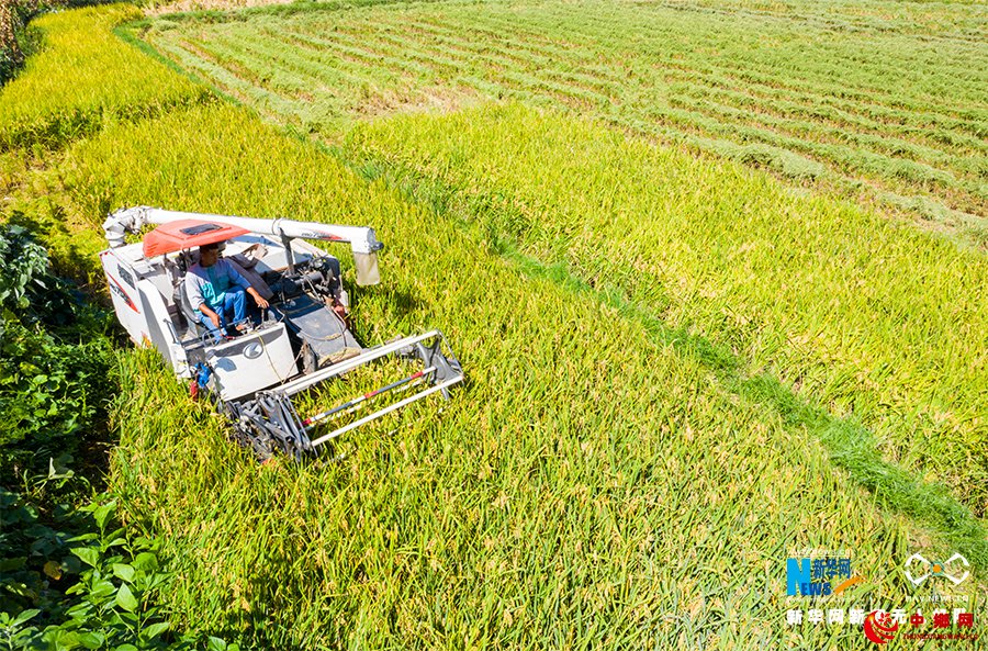 金秋时节,水稻陆续成熟,大地处处洋溢丰收的喜悦。在重庆市南川区的田间地头,各种农机成为农民的好帮手,金黄稻田里热闹的机收场景随处可见。新华网发(甘昊旻 摄)