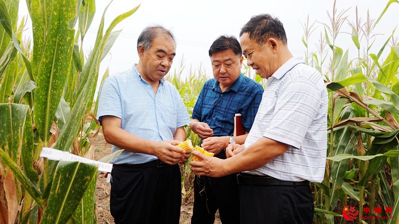 9月14日,该区农技人员在插花镇毛桥村查看玉米灌浆情况。