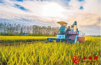 目前,河南省驻马店市正阳县水稻相继进入成熟期,由于近期雨水增多,农民们加快机收进度,确保颗粒归仓。图为9月19日,正阳县大林镇蔡庄村村民正在抢时抢收水稻。