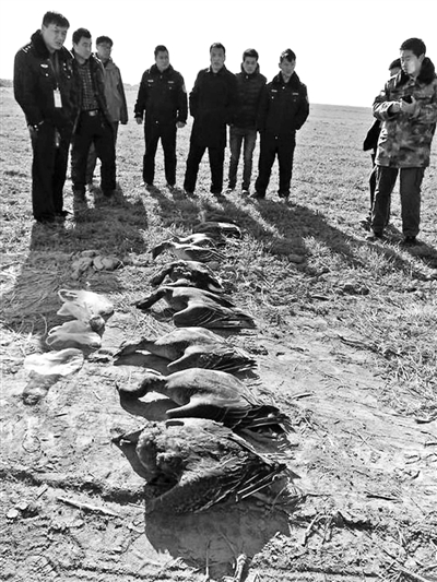 当晚,宋克明及十多位志愿者先后赶赴现场。在周围巡视一圈,志愿者们发现田地里落着十几只已经死亡的野鸟,仅大雁就有十只。