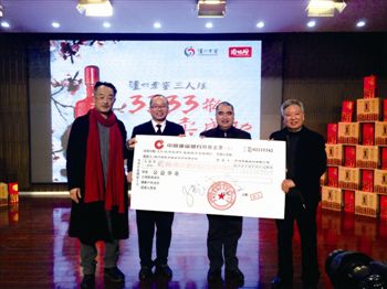 活动现场义卖的是目前市场上新推出的三人炫贺岁版。据介绍,“三人炫”贺岁新包装,整体加入中国红元素,瓶器增加了羊年元素,寓意着三羊开泰,赋予了浓浓的年味。此外,还增加了手提袋,更加贴心便利。为了让更多人尝到这琼浆玉液,每人限购20件。泸州企业家联合会会员、慈善机构、爱心人士等近300人纷纷爱心认购,短短的20分钟,3333瓶“三人炫”售罄。最终获得善款28万余元,全部捐给“泸州老窖爱心基金”,用于公益事业。四川省扶贫基金会泸州市分会会长、泸州市扶贫开发协会会长梅兴岗先生亲自为认购嘉宾颁发爱心勋章,鼓励大家持续做公益。